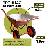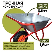 Тачка Промышленник 1-колесная оцинкованная, 110 литров (пневмоколесо)