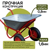 Тачка Промышленник 2-колесная оцинкованная, 110 литров (пневмоколесо)
